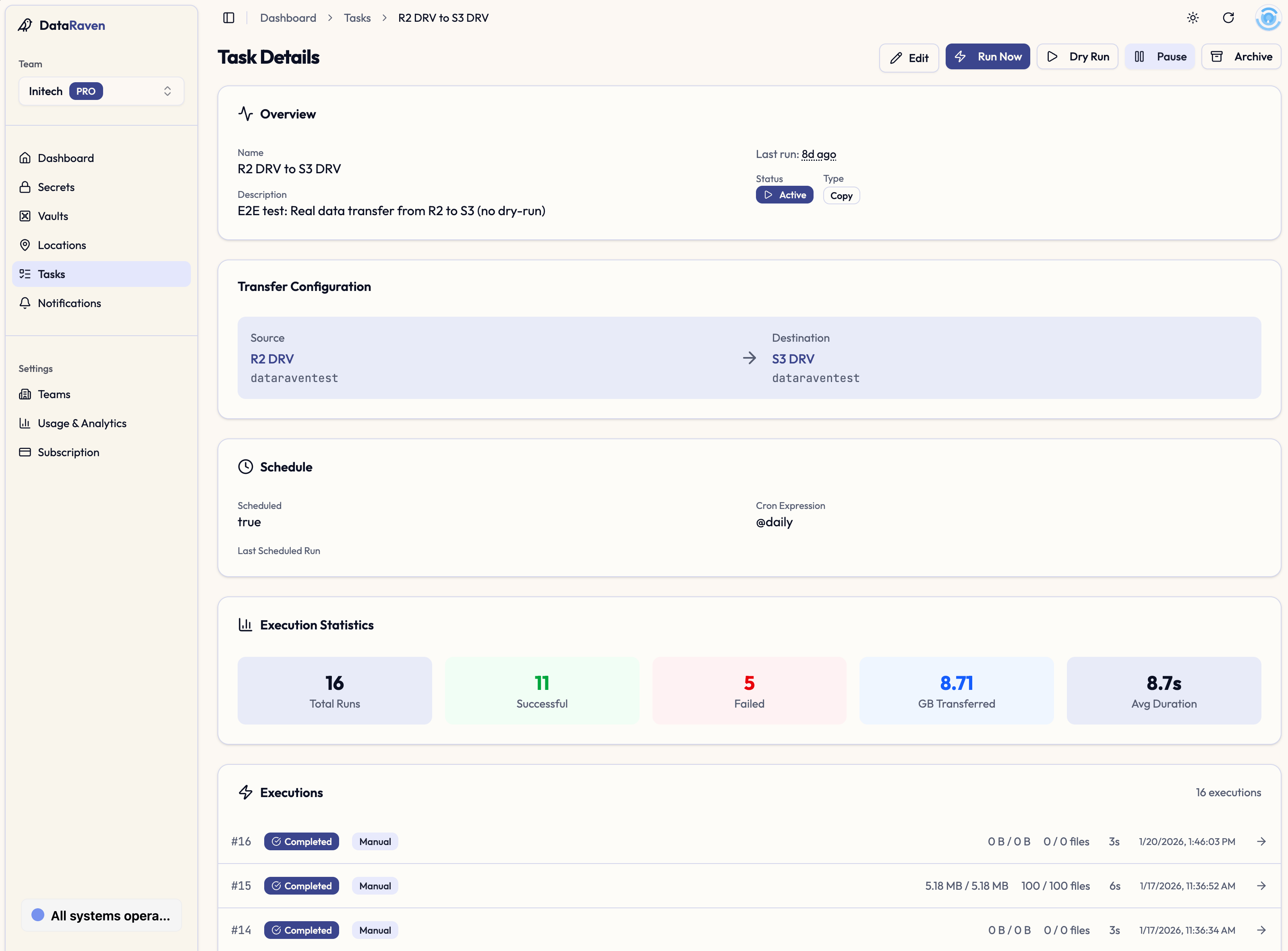 Data Raven is a fully managed platform built on top of Rclone. It handles the infrastructure, scheduling, monitoring, logs, and team collaboration.
