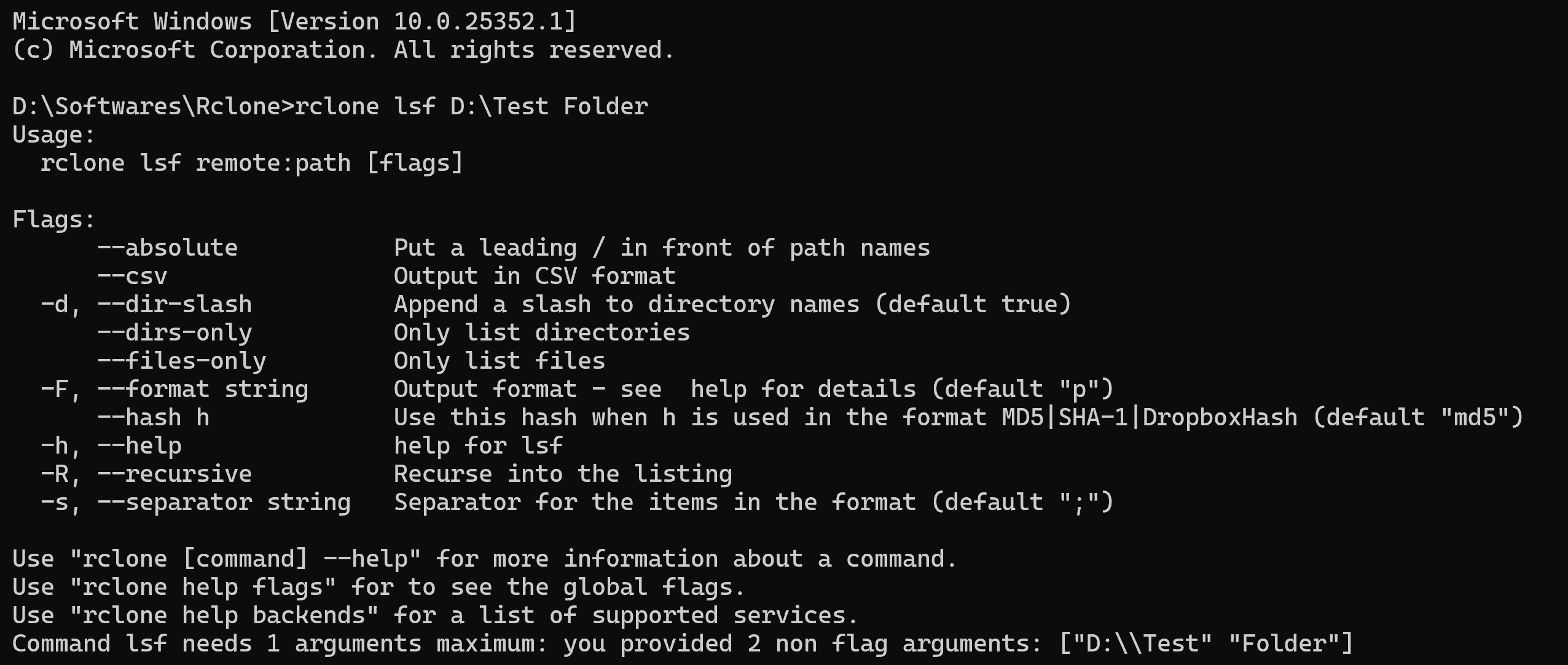 rclone lsf "D:\Test Folder"