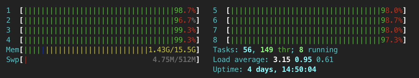 While monitoring both instances during a rclone sync command to evaluate timings and performance, I noticed that during file checks of a sync command the cpu consumption is totally maxed out. And this can last several minutes. Although during file transfers only, the usage performance is a lot healthier.