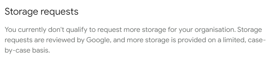 I was told by support "add more users and we will honour the agreement of 'as much storage as you need'". But I knew that this would change as it always does. This is proof of that. Because people added more accounts to have Google honour a service they had already entered into an agreement to honour... and then they arbitrarily decide that "they can only ask for more a maximum of three times".